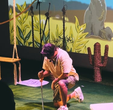 Mais voici que Siméo, un oiseau perché, dans tous les sens du terme, confie à Mathias et son doudou Marius une mission fantastique ! Ensemble, ils doivent récolter des indices pour trouver un trésor qui n’a pas de prix. Au fil des indices, et avec l’aide essentielle du public, ils rencontreront, entre autres, un roi solitaire, un chien peureux ou encore un chevalier triste.